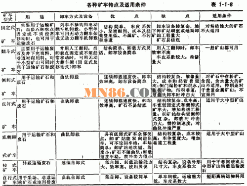 (6)底側(cè)卸式礦車比底卸式礦車優(yōu)點(diǎn)多,應(yīng)優(yōu)先選用。